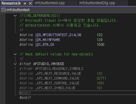 | resource.h / .rc | IDC_BTN_OK = 1000 정의 |
