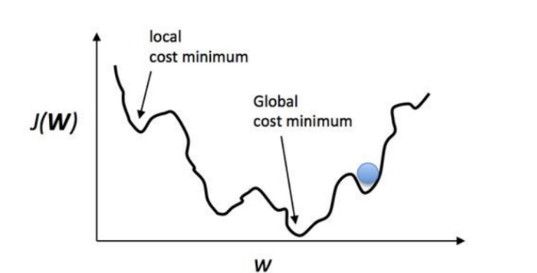 목표 : 손실 함수의 최소점인 Global cost minimum을 찾는 것