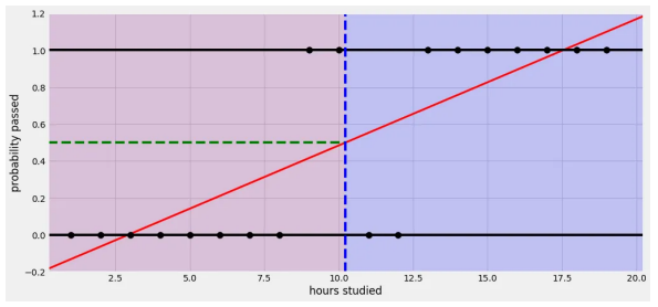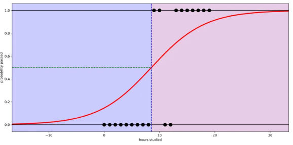 대학교 시험 전 날 공부한 시간을 가지고 해당 과목의 이수 여부(Pass or fail)를 예측하는 문제