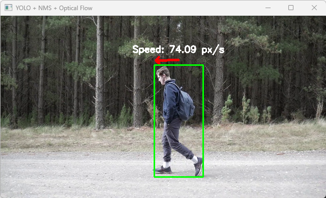 cv2.imshow('YOLO + NMS + Optical Flow', frame)
