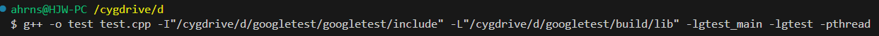 -I"/cygdrive/d/googletest/googletest/include" -L"/cygdrive/d/googletest/build/lib" -lgtest_main -lgtest -pthread